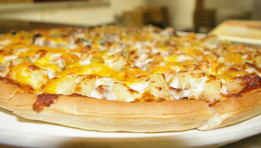 Black Olives, Green Olives, Mushrooms, Onions, Banana Peppers, Green Peppers, Jalapeño Peppers, Pineapple, Tomatoes, Cheddar and Mozzarella