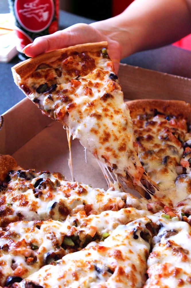Beef, Ham, Pepperoni, Sausage, Black Olives, Green Peppers, Onions, Mushrooms, Tomatoes, Cheddar Cheese, Mozzarella Cheese & Extra Cheese